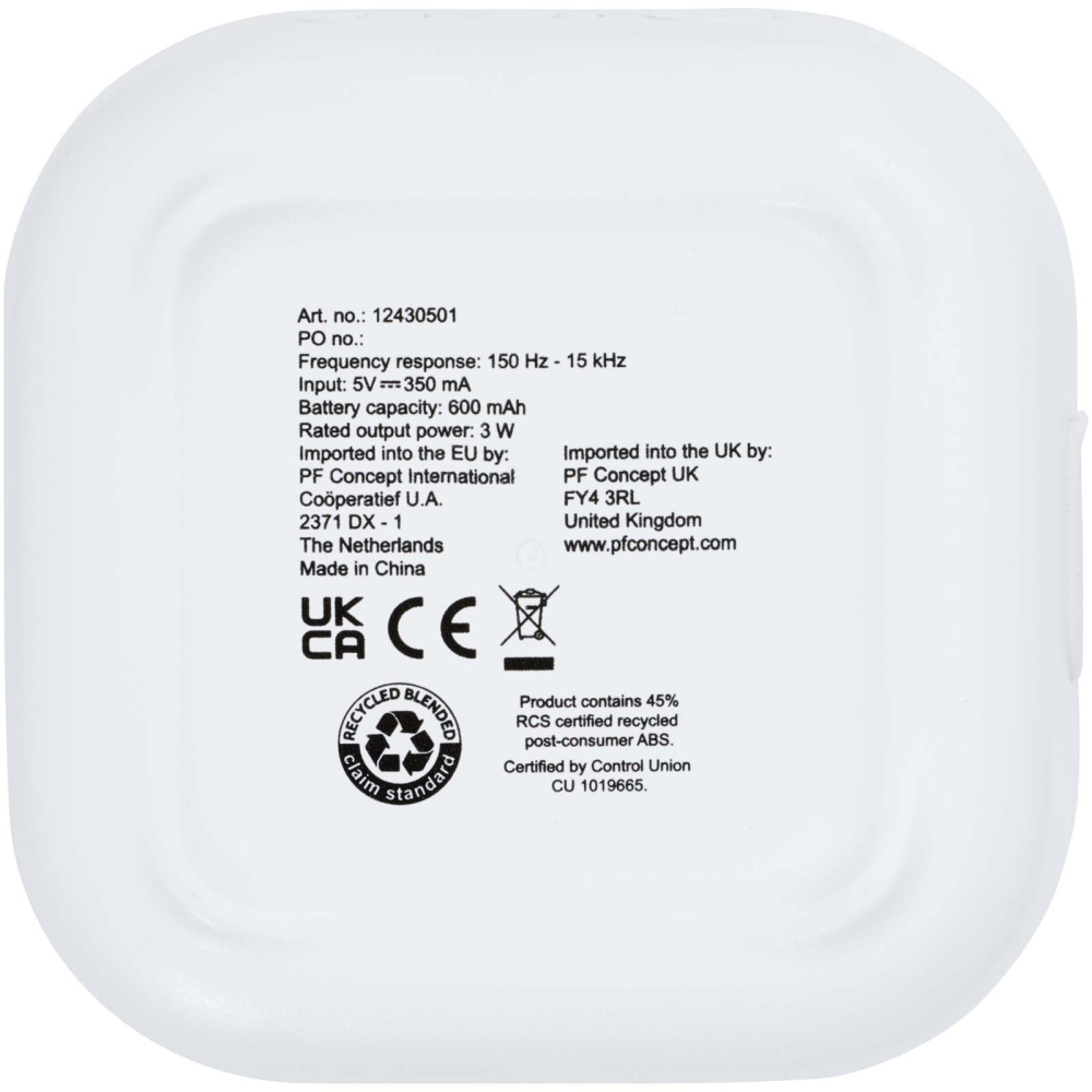 2.0 3W mini reproduktor Bluetooth z RCS recyklovaného plastu, bílá