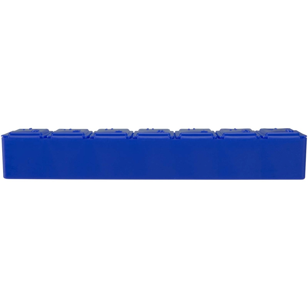 Zůstaňte organizovaní a důslední s tímto pouzdrem na multivitaminy, které je navrženo tak, aby vaše denní doplňky stravy byly v souladu s plánem. Obsahuje sedm jasně označených přihrádek (od pondělí do neděle), abyste nikdy nevynechali dávku. Je kompaktní a odolné, ideální jak na cesty, tak na každodenní použití, což usnadňuje přenášení a ukládání vitamínů. Rozměry: 14,9 x 2,4 x 2,8 cm