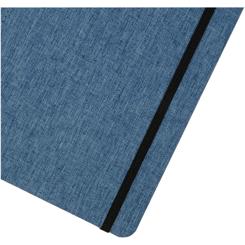 Poznámkový blok velikosti A5 s obálkou z RPET tkaniny. Obsahuje 96 listů linkovaného recyklovaného papíru 70 g/m2 se stuhovou záložkou a očkem na pero. Lepenkový obal. Rozměry: 21,5 x 14,5 cm