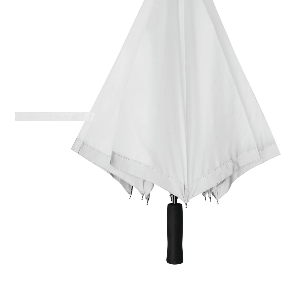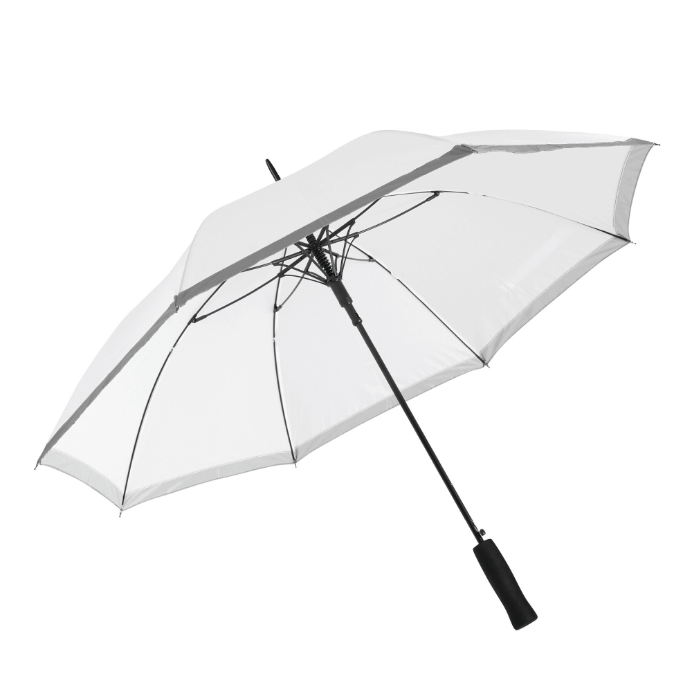 Automatický holový deštník, žebra ze skelných vláken a kovové špičky, rukojeť z EVA, potah z polyesterové pongee z recyklovaného plastu / RPET, se stříbrným reflexním pruhem, zapínání na suchý zip. Rozměry: O105 / 83 cm