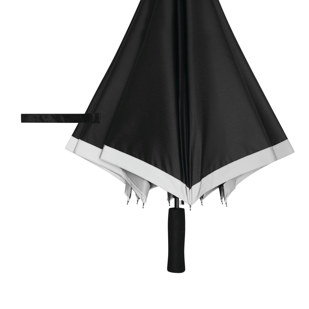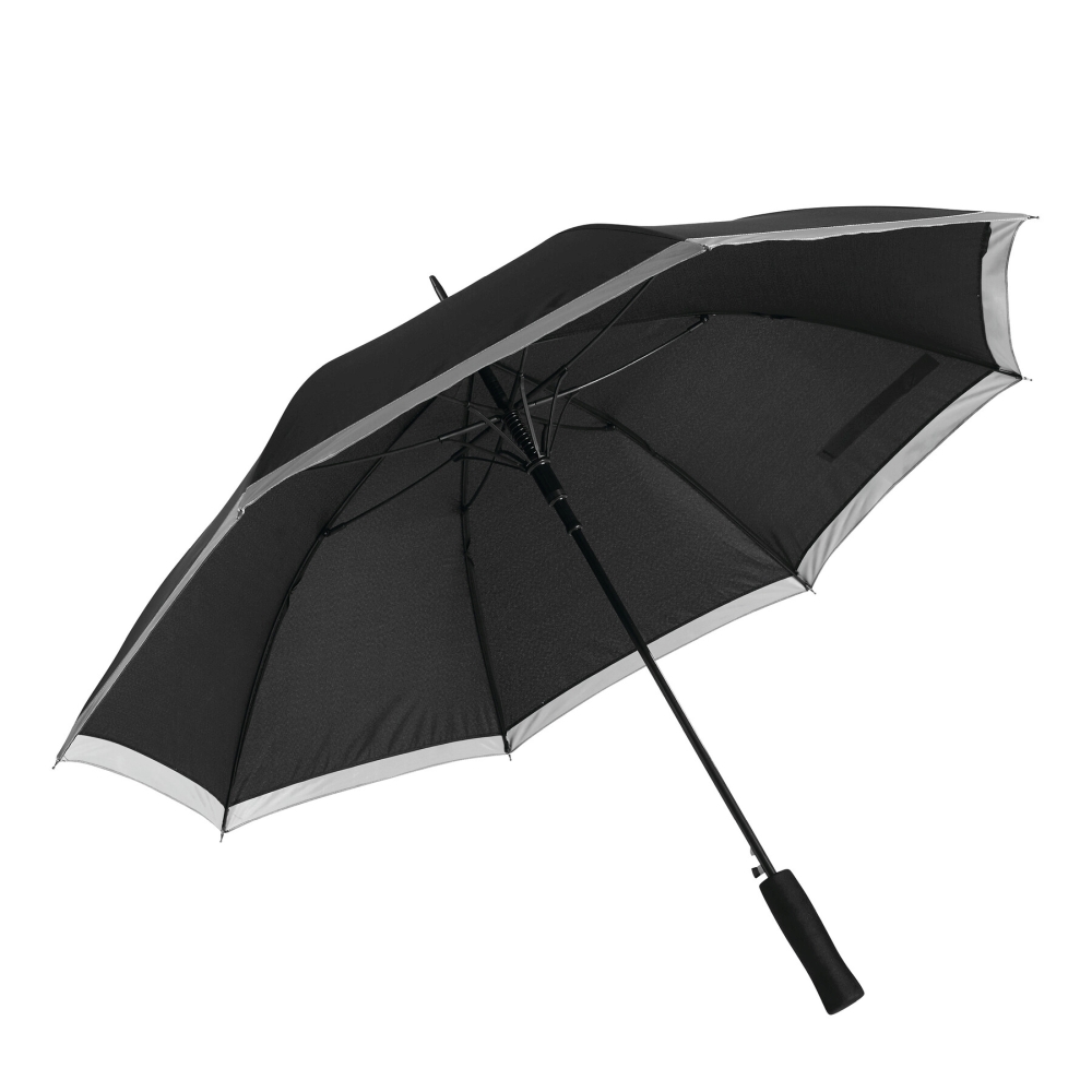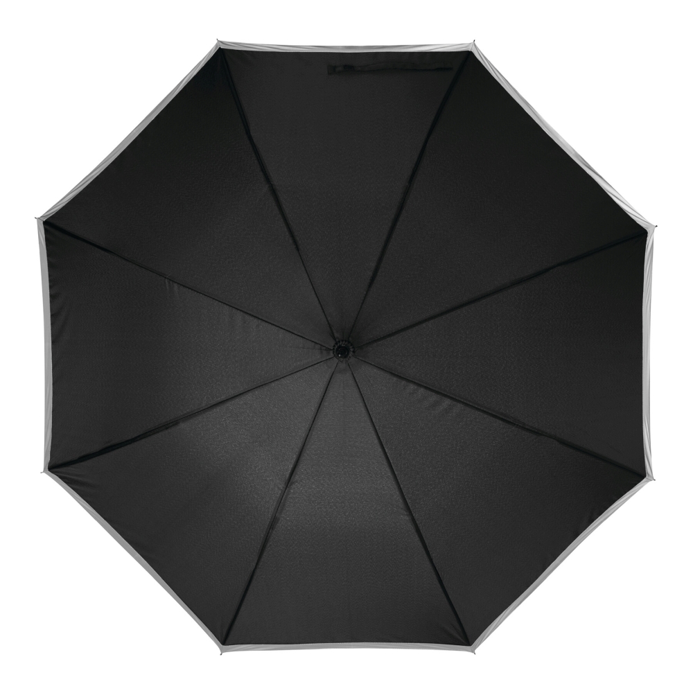 Automatický holový deštník, žebra ze skelných vláken a kovové špičky, rukojeť z EVA, potah z polyesterové pongee z recyklovaného plastu / RPET, se stříbrným reflexním pruhem, zapínání na suchý zip. Rozměry: O105 / 83 cm