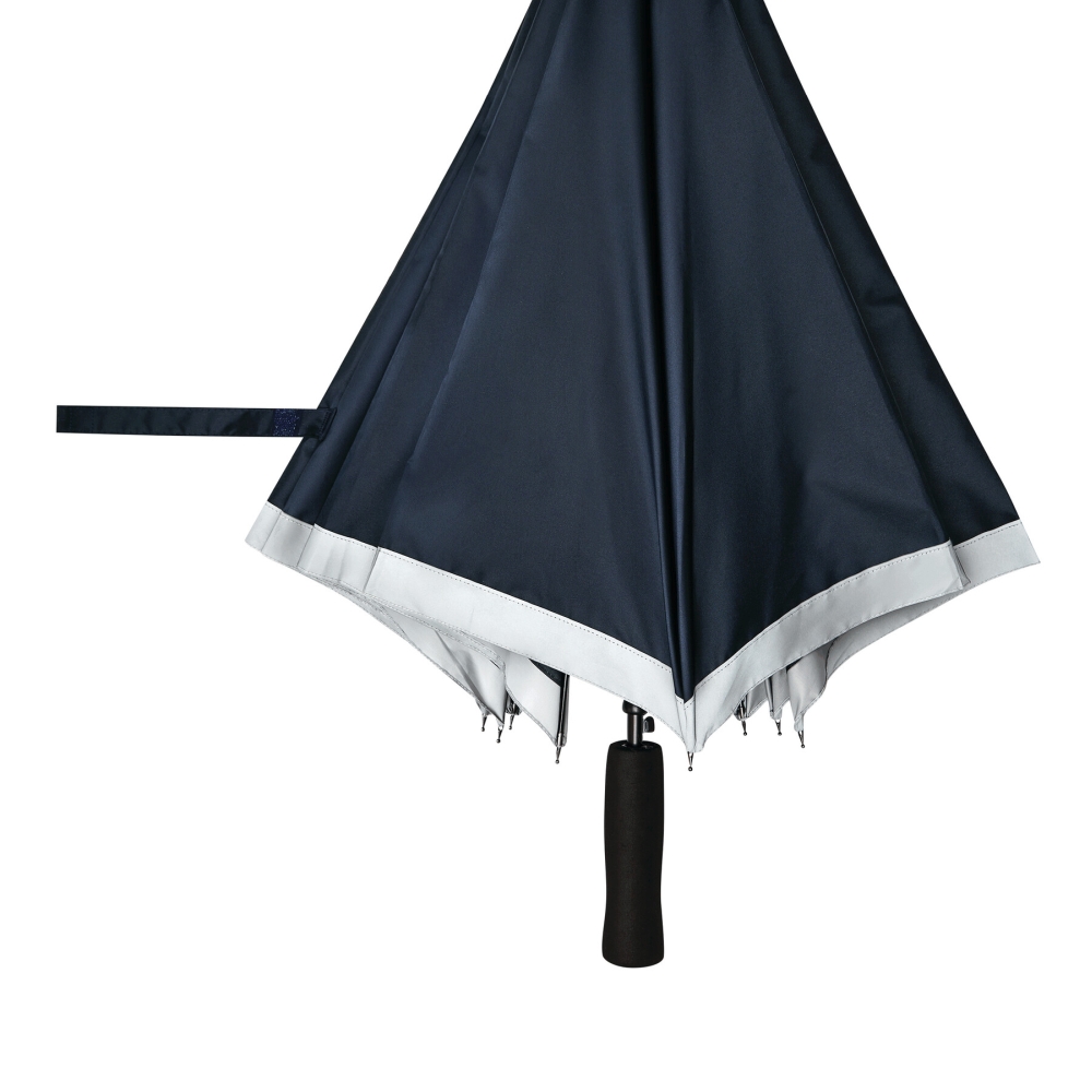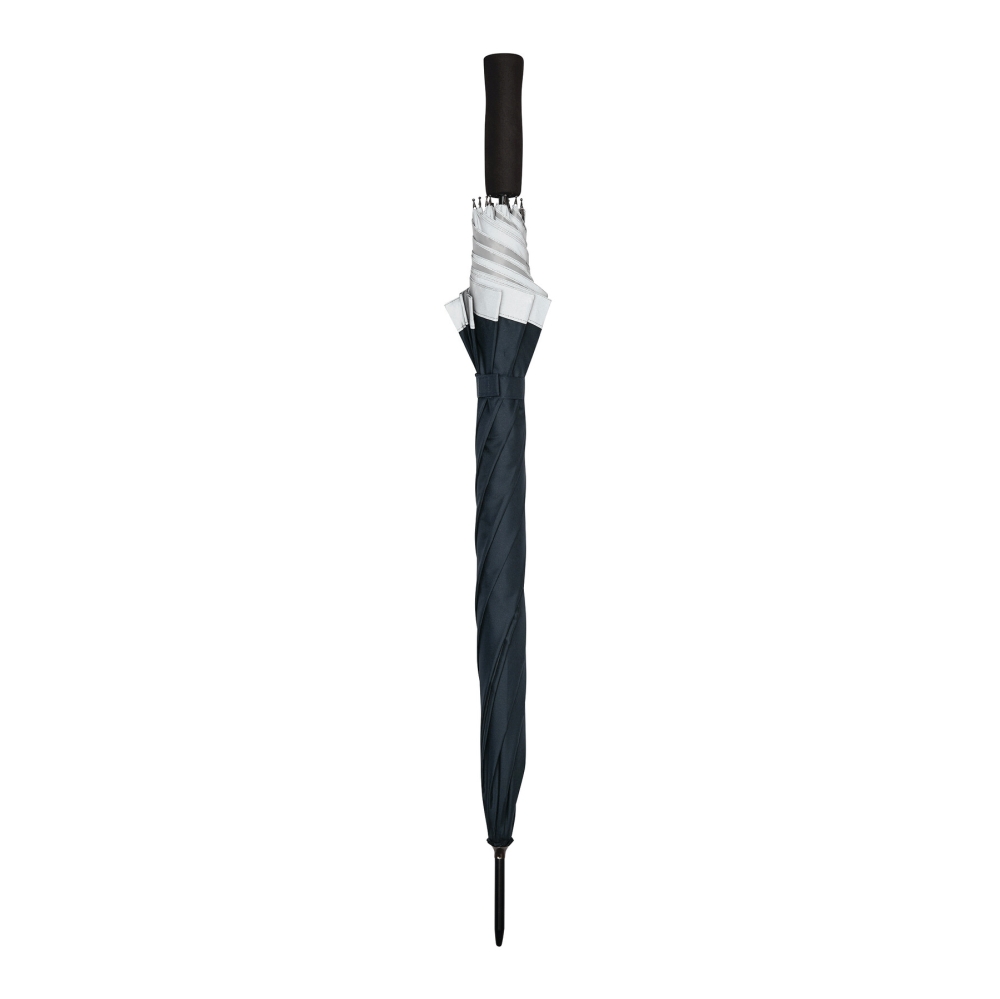 Automatický holový deštník, žebra ze skelných vláken a kovové špičky, rukojeť z EVA, potah z polyesterové pongee z recyklovaného plastu / RPET, se stříbrným reflexním pruhem, zapínání na suchý zip. Rozměry: O105 / 83 cm