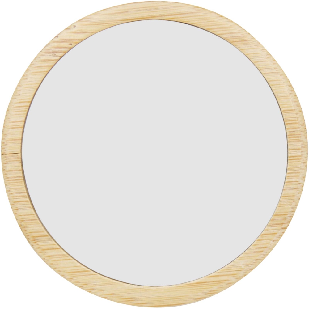 Kulaté zrcátko vyrobené z bambusu pro nádech přirozenosti a elegance. Dodáváno v bavlněném sáčku. Rozměry: 6,9 x 6,9 cm
