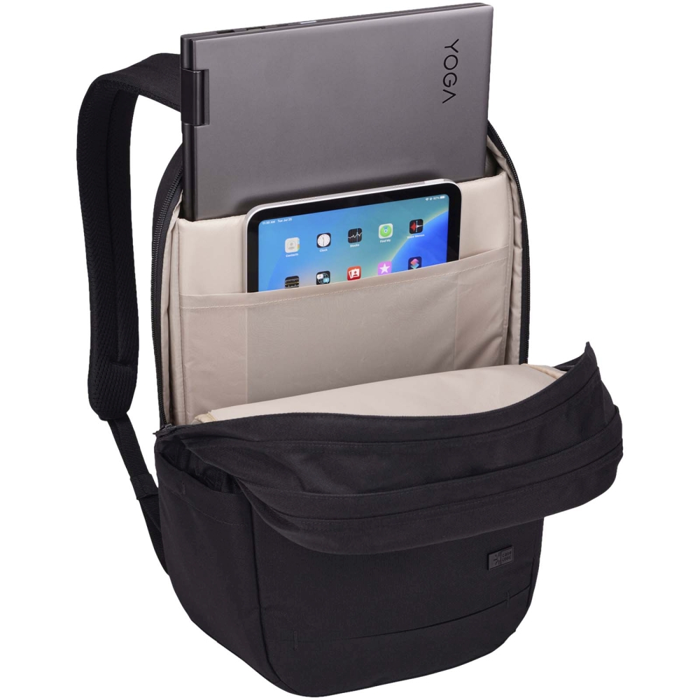 Batoh na 15,6" notebook je jednoduchý a vkusný batoh vyrobený z recyklovaných materiálů s promyšlenými organizačními funkcemi. Je vyrobena ze 100% recyklovaného polyesteru 600D a podšívky z polyesteru 150D. Polstrovaná přihrádka na notebook chrání 15,6 notebook a pouzdro na tablet pojme 12,9 tablet. Uvnitř batohu jsou kapsy na drobné příslušenství a síťovaná kapsa na zip, která poskytuje další bezpečné uložení drobností, jako jsou klíče. Na vnější straně batohu je skrytá bezpečnostní kapsa na zadní desce, která uchovává důležité věci, jako je cestovní pas nebo peněženka skryté a přesto po ruce. Přední kapsa umožňuje rychlé uložení věcí na cestách a 2 boční kapsy jsou vhodné na láhve s vodou nebo deštník. Batoh je také vybaven provléknutým popruhem pro zavazadlo k připevnění tašky k cestovnímu zavazadlu pro snadné cestování. Rozměry: 30,5 x 46 x 19 cm