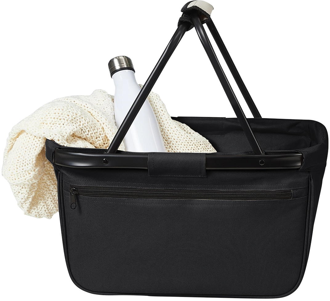Skládací nákupní košík, s hliníkovým rámem, 600D polyester. Doporučená technologie tisku: sítotisk S2, magicprint. Maximální velikost tisku: 100 × 100 mm. Rozměry: 25 × 25 × 45 cm. Kartonové množství v ks: 10.