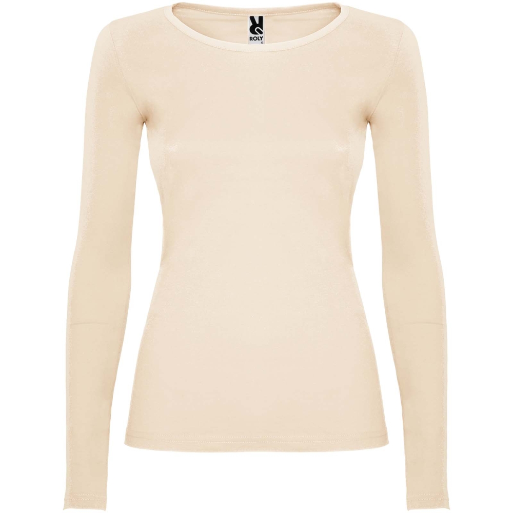 Polopřiléhavé tričko s dlouhým rukávem a kulatým výstřihem s jemným lemem. Rukávy bez manžet. Boční švy. Sundávací štítek.