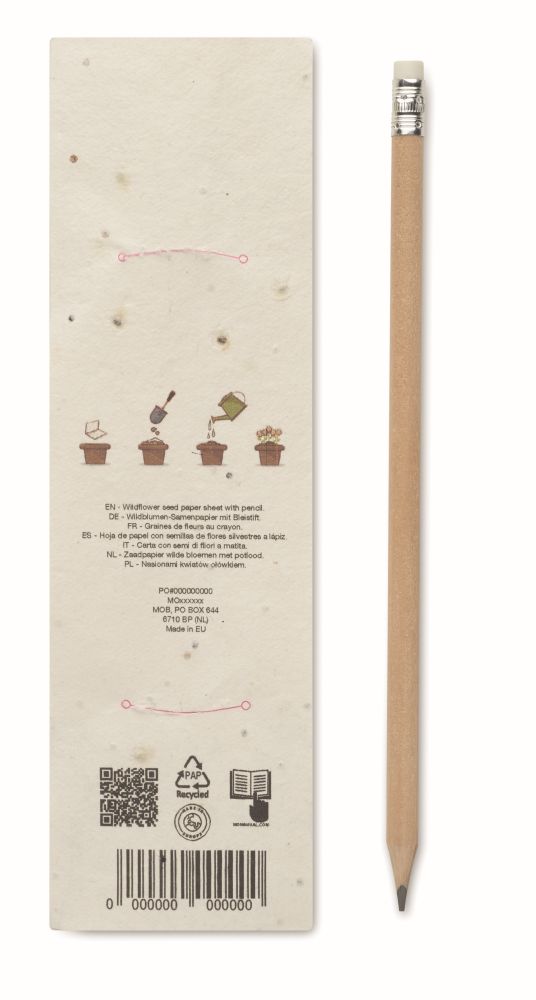 Dřevěná tužka s gumou, obal se semínky slunečnice