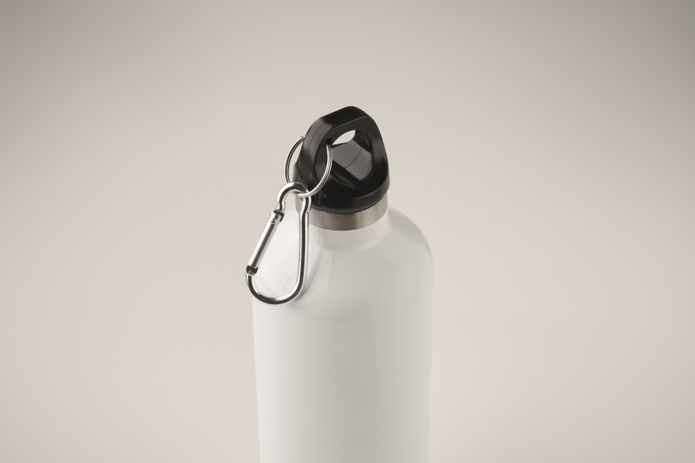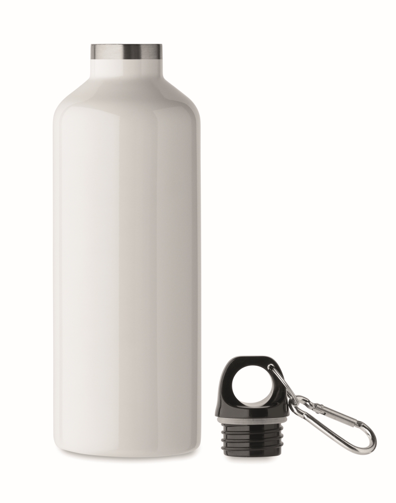 Dvoustěnná izolační láhev z recyklované nerezové oceli (90 % recyklované nerezové oceli a 10 % nerezové oceli) s víčkem s karabinkou. Karabina není určena pro horolezectví. Objem: 500 ml. Rozměry: O 7 x 23 cm. Materiál: nerezová ocel
