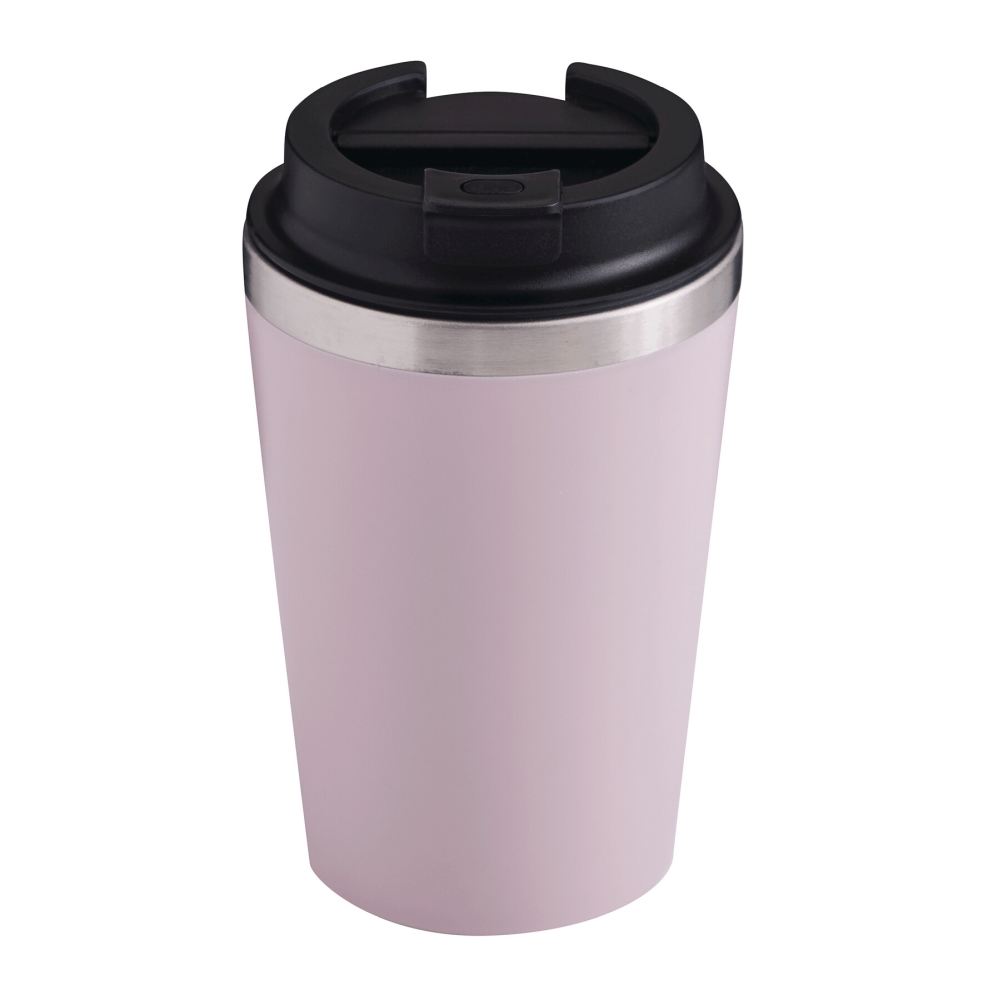 Dvouvrstvý termohrnek s víčkem, 350ml, uvnitř nerezový, zvenku plastový,růžová