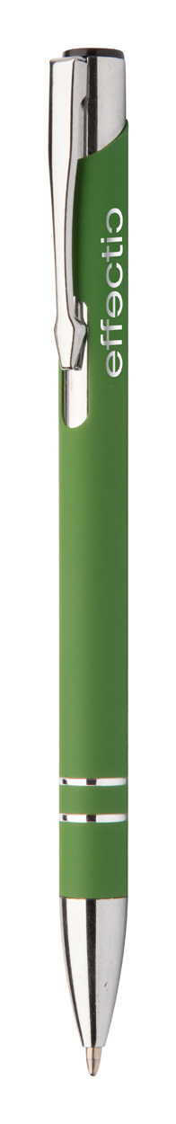 Hliníkové kuličkové pero s pogumovaným povrchem a modrou náplní. Speciální povrch pro laser stříbrného loga. Rozměr: o10×138 mm