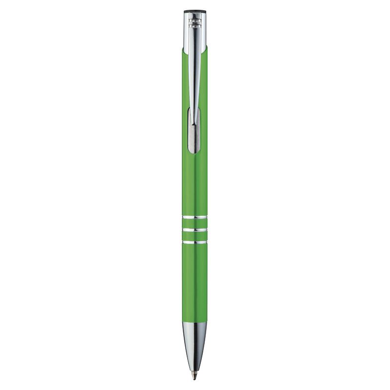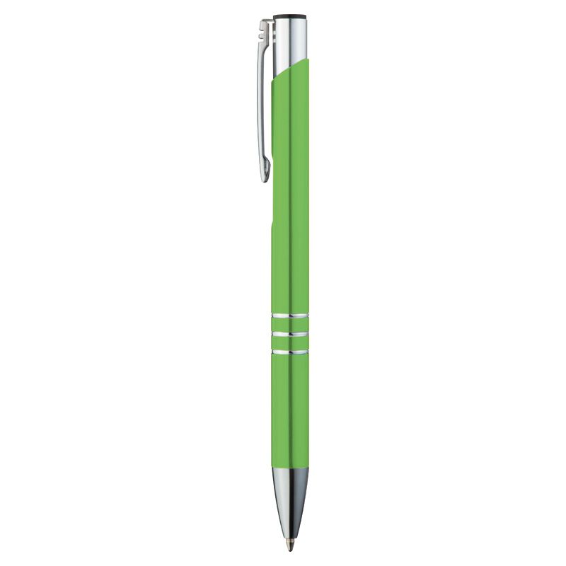 Hliníková propiska se třemi kroužky a modrou náplní, limetkově zelená