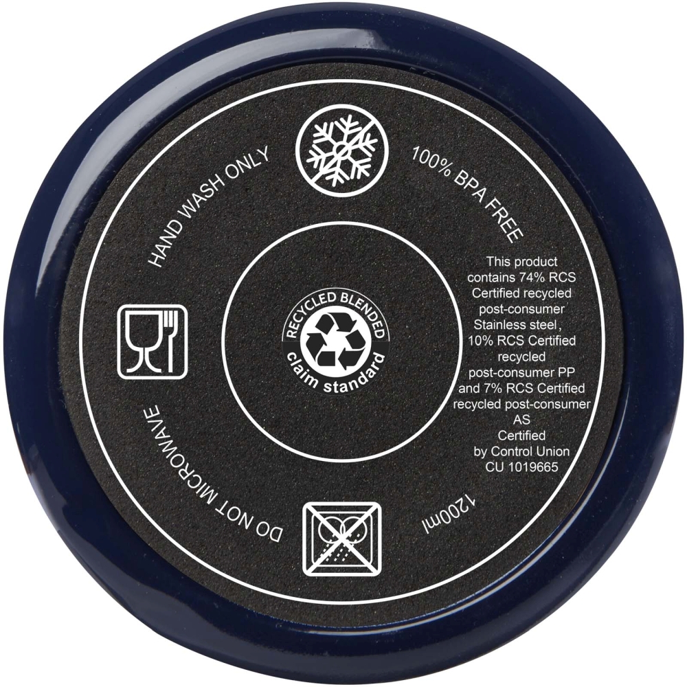 Hrnek se vyznačuje odolnou konstrukcí s dvojitou stěnou, která udržuje nápoje horké nebo studené v jakémkoli prostředí. Vnitřní stěna hrnku je vyrobena z recyklovaného plastu, vnější stěna z recyklované nerezové oceli. Hrnek o objemu 1200 ml nabízí stylový způsob, jak zůstat hydratovaný po celý den. Má přítlačné víčko odolné proti vyšplíchnutí se dvěma otvory a otočným uzávěrem. Dodává se s recyklovaným brčkem potravinářské kvality. Nedoporučujeme mýt v myčce. Rozměry: 13,8 x 26,1 x 10 x O 10 cm