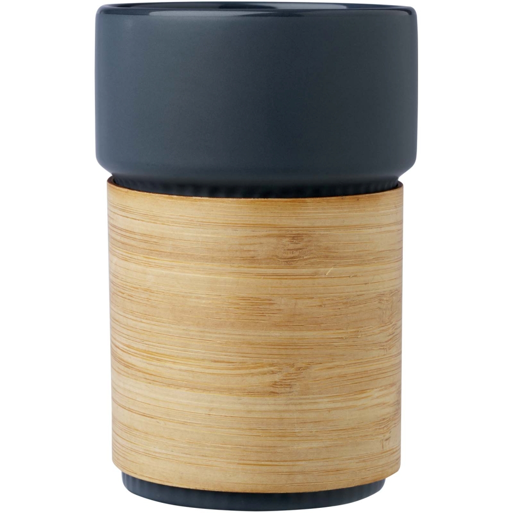 Stylový keramický kelímek je dodáván s odnímatelným bambusovým návlekem, který je ideální pro použití při pití horkých nápojů. Bambus pochází z udržitelných, ekologicky a sociálně odpovědných zdrojů. Objemová kapacita: 340 ml. Dodává se v dárkové krabičce z recyklované lepenky. Rozměry: 11,7 x 6,4 cm