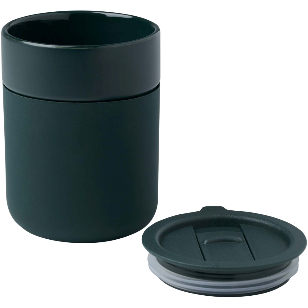 Keramický kelímek se silikonovým obalem a plastovým víčkem 330ml, zelená