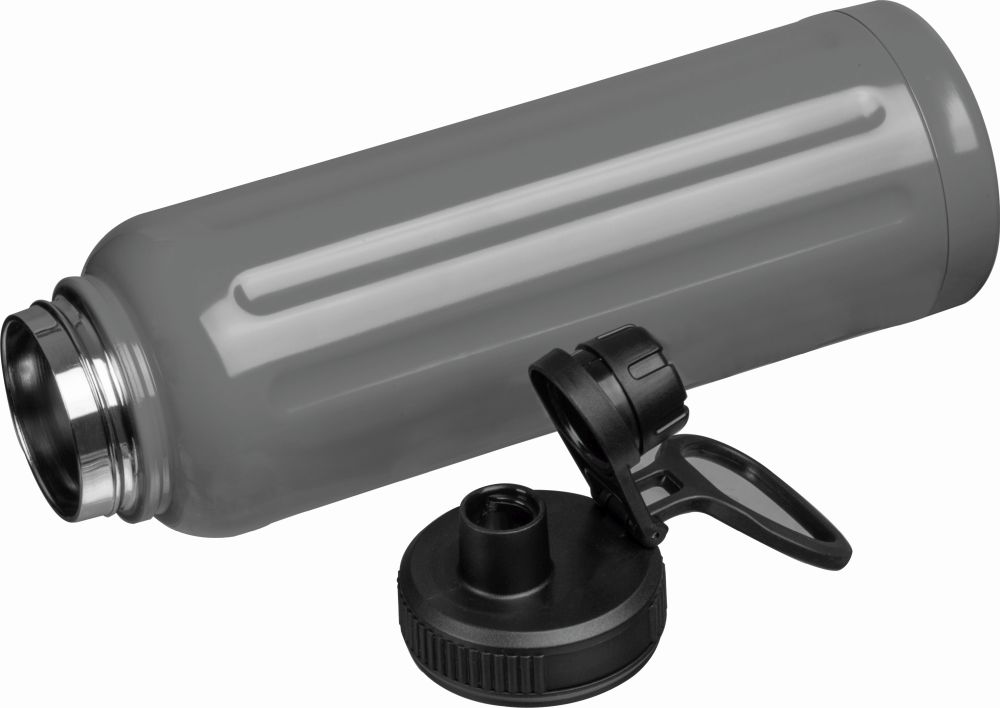 Velká kovová láhev na pití o objemu 1,2l s vakuovou izolací. Láhev má šroubovací víčko s přidaným rychlouzávěrem a poutkem. Rozměry: o 9 x 30 cm