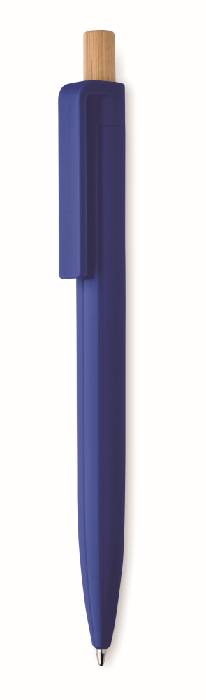 Propiska z recyklovaného ABS s bambusovým tlačítkem. Modrý inkoust. Rozměry: 13,4 x 1,5 x 1,1 cm