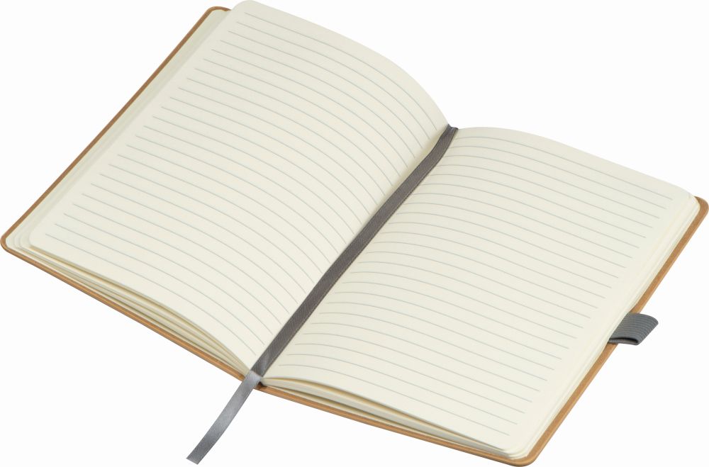 Linkovaný zápisník, má 192 stran, záložku, gumičku na zavírání a poutko na pero. Obálka zápisníku je vyrobena z kombinace bambusu a recyklovaného polyesteru na zadní straně. Rozměry: 14,3 × 1,4 × 21cm
