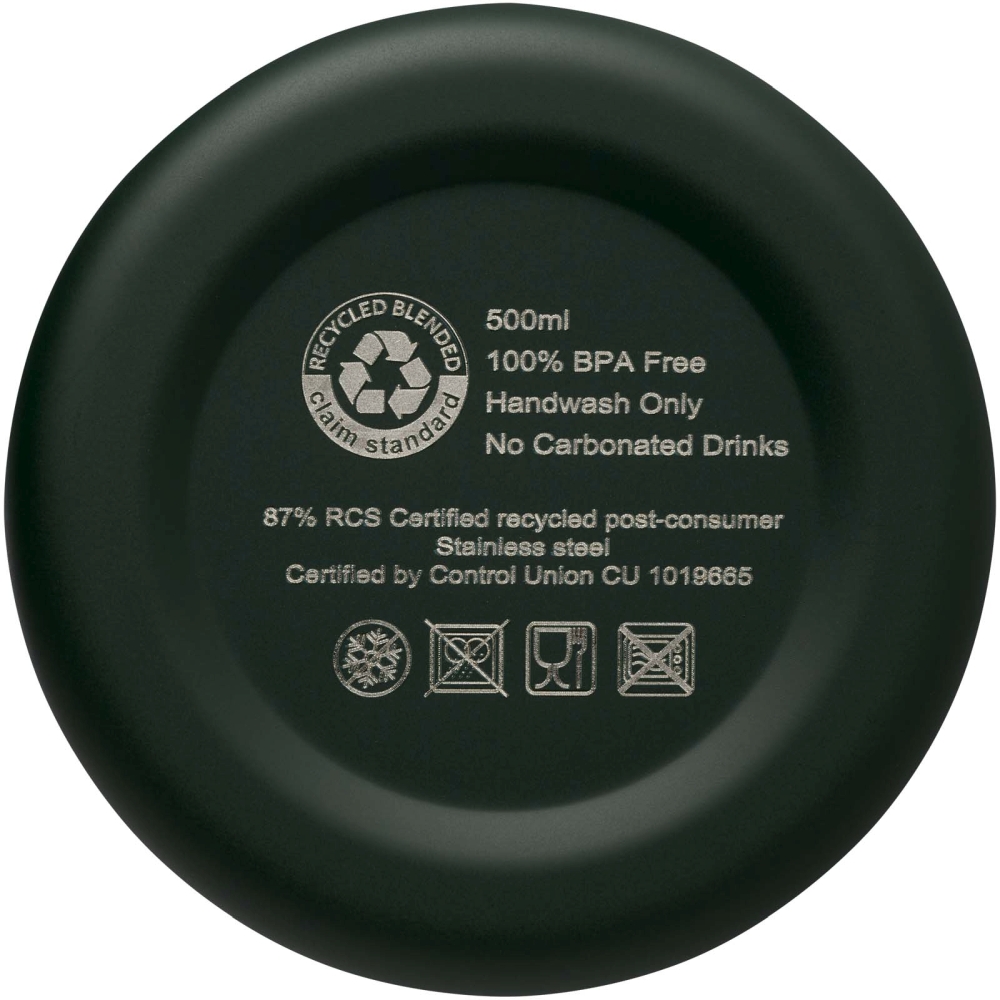 Lahev z nerezové oceli s měděnou vakuovou izolací a jednoduchým designem. Izolovaná konstrukce z nerezové oceli brání kondenzaci na vnitřní straně lahve, která je díky trendy matné povrchové úpravě ve formě práškového nástřiku je vysoce odolná. Objem je 500 ml. Nedoporučuje se mýt v myčce. Dodává se v dárkové krabičce z recyklované lepenky. Udržuje nápoje horké po dobu 12 hodin nebo studené po dobu 24 hodin. Rozměry: 22,4 x 7,4 cm