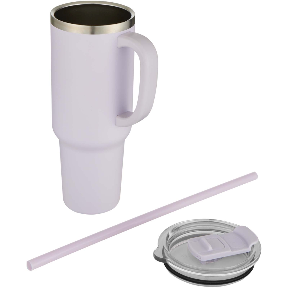 Měděný vakuově izolovaný hrnek s brčkem a dvojitou stěnou 1200ml, světle fialová