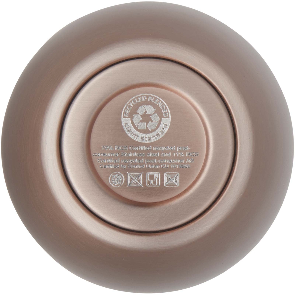 Láhev je vyrobena z nerezové oceli a má dvoustěnnou vakuovou konstrukci s měděnou izolací, která udrží nápoje horké po dobu 6 hodin nebo studené po dobu 24 hodin. Konstrukce zabraňuje kondenzaci na vnější straně hrnku. Snadné pití, nacvakávací víčko. Sprejován práškovým lakem na vnějším těle. Široký otvor pro pohodlné plnění a nalévání. Objem je 350 ml. Dodává se v dárkové krabičce z recyklované lepenky. Rozměry: 11,42 x 8,9 cm