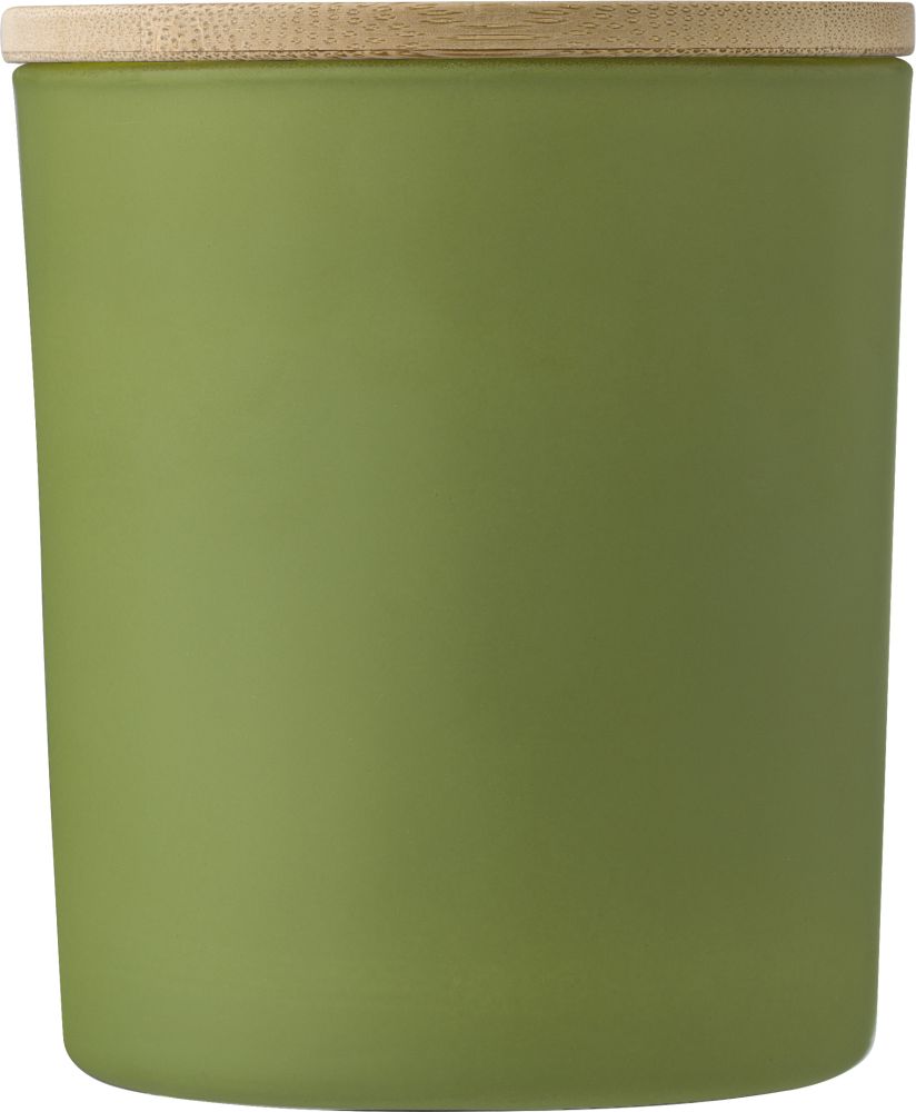 FLAVIAS Menší skleněná svíčka s bambusovým víčkem, zelená (jasmín)