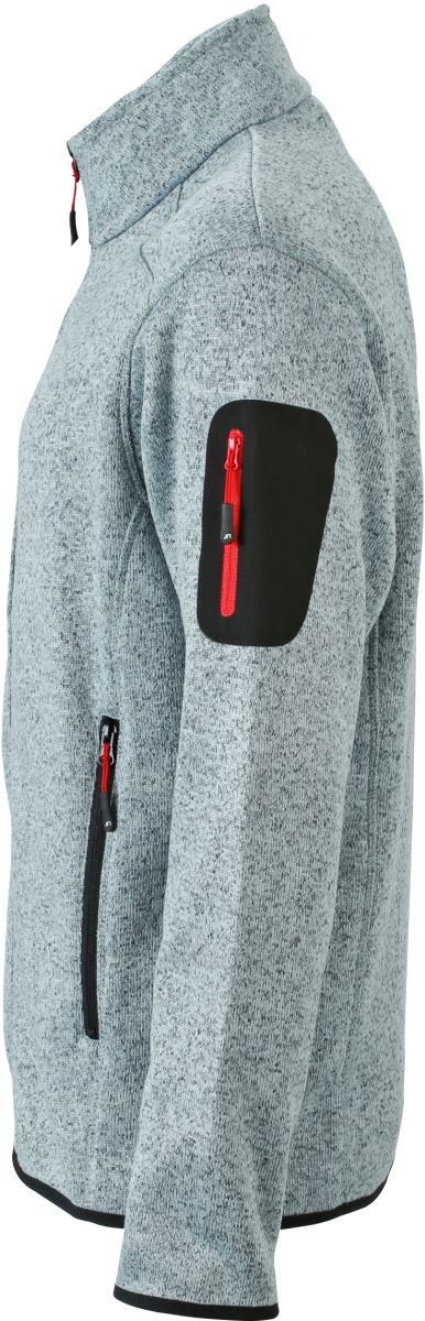 Pánská fleecová bunda James Nicholson knit fleece jacket men, šedá/červená, vel. XL