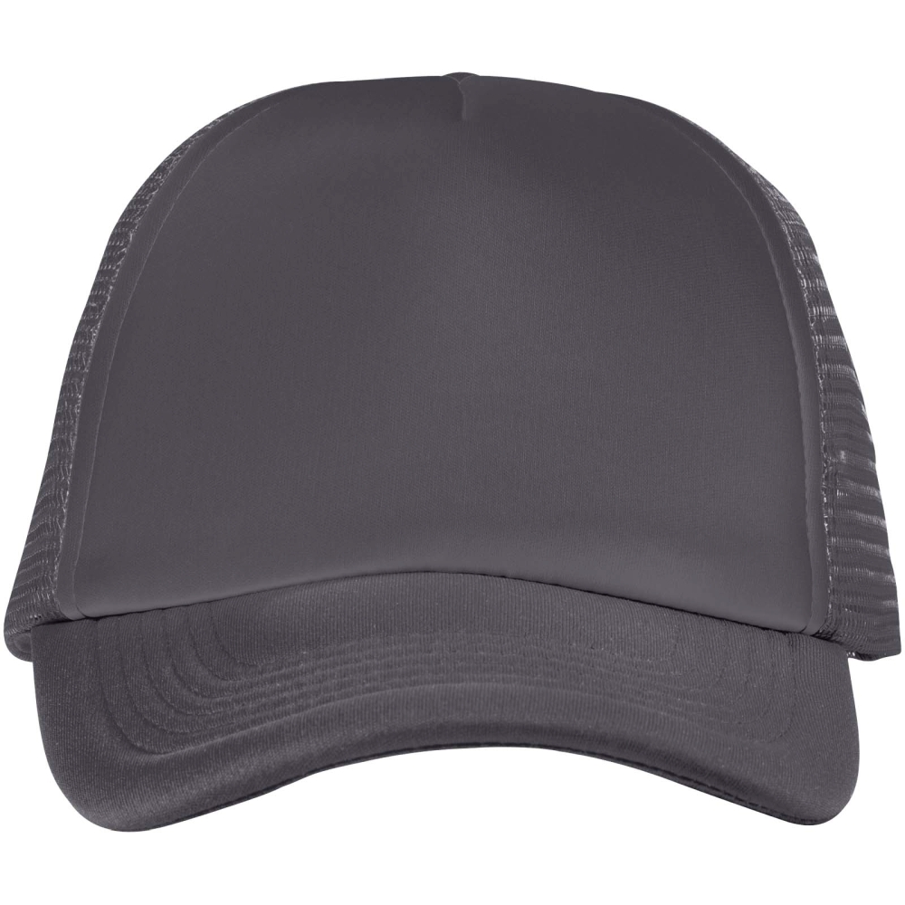 Pětipanelová čepice je klasická truckerská čepice s pěnovým polyesterovým žerzejem o gramáži 100 g/m2 v přední části a prodyšnou polyesterovou síťovinou v zadní části. Tato kšiltovka je vybavena praktickým plastovým zapínáním pro bezpečné uchycení pro obvod hlavy 58 cm, což zajišťuje pohodlný a přizpůsobivý pocit.
