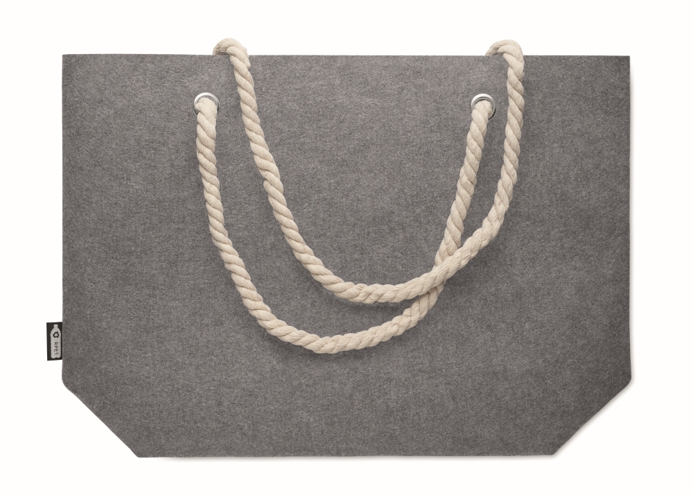 Plážová nebo nákupní taška z plsti RPET s rukojetí ze šňůry. Tloušťka plsti: 2 mm. Rozměry: 46 x 13 x 32 cm