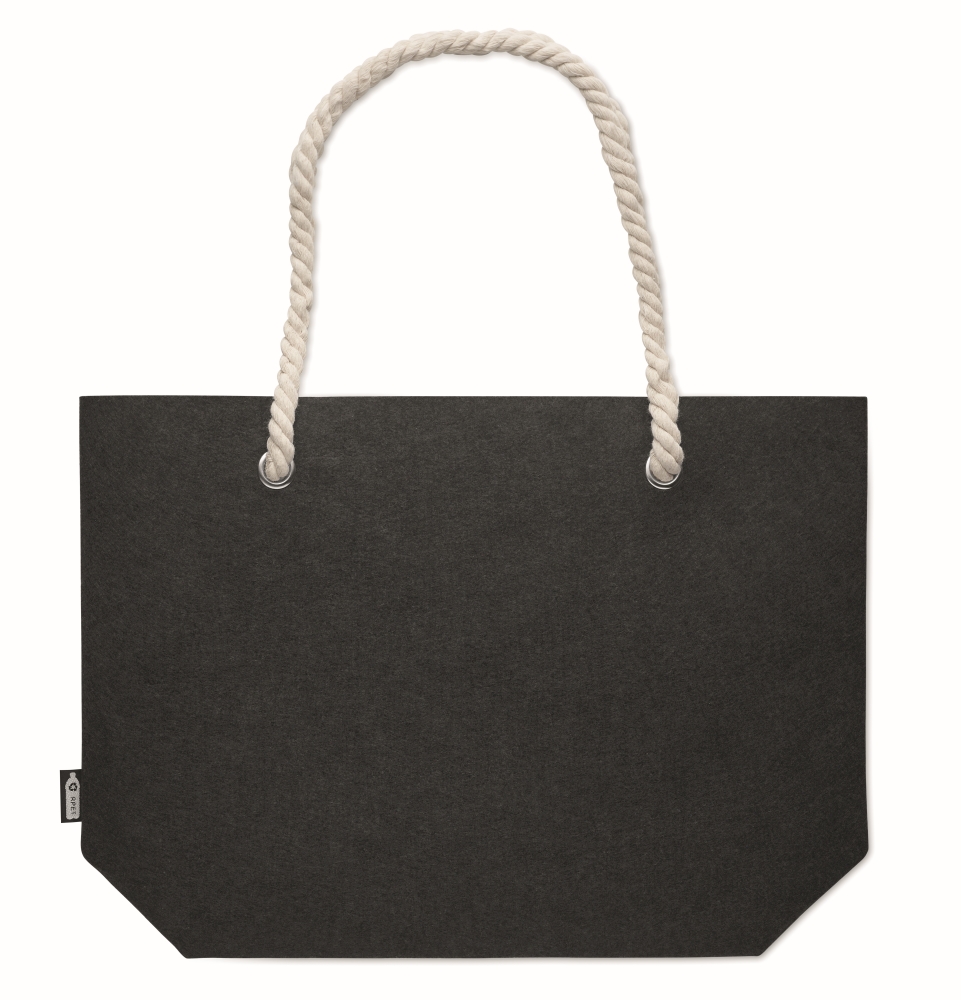 Plážová nebo nákupní taška z plsti RPET s rukojetí ze šňůry. Tloušťka plsti: 2 mm. Rozměry: 46 x 13 x 32 cm