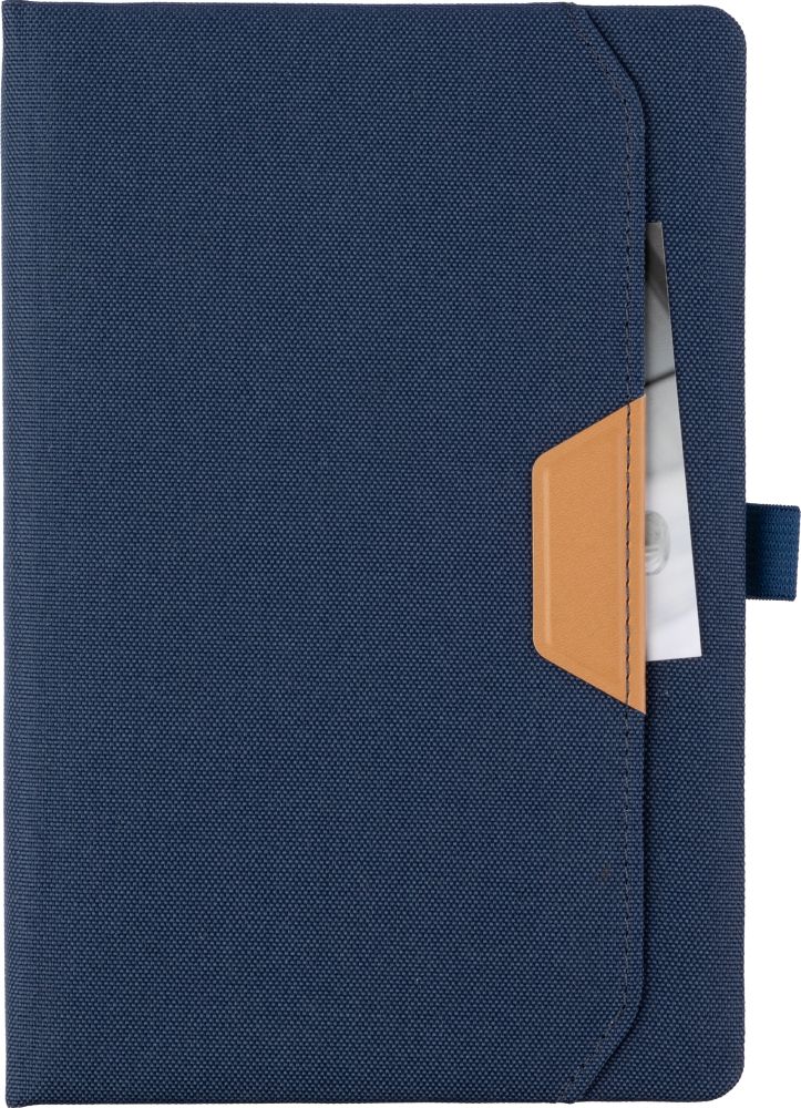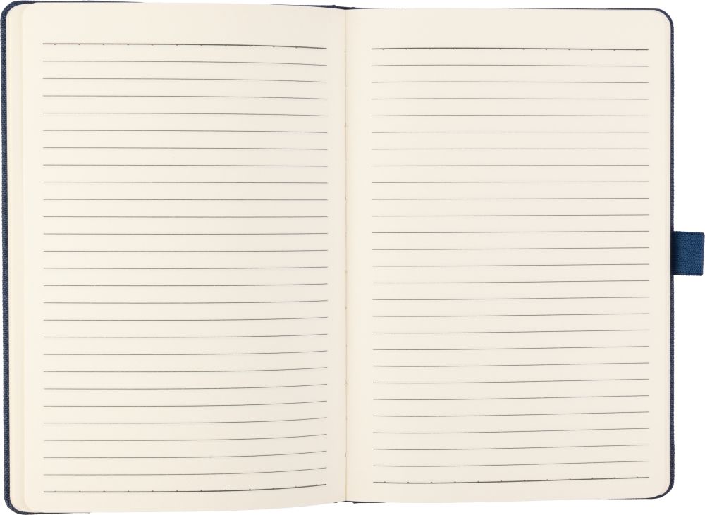 Poznámkový blok z rPET (cca A5) s PU detailem a 100 linkovanými stranami (80gsm). Jednotlivě balené v hedvábném papíru. Materiál: RPET Rozměry: 14,5 x 21,7 x 1,8 cm