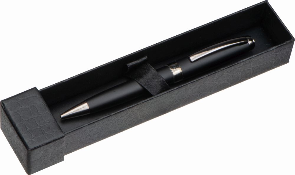 Kovové kuličkové pero značky Mark Twain s matným tělem, kovovými detaily a kovovou náplní Parker. Rozměry: 19,4 x 3,9 x 3 cm