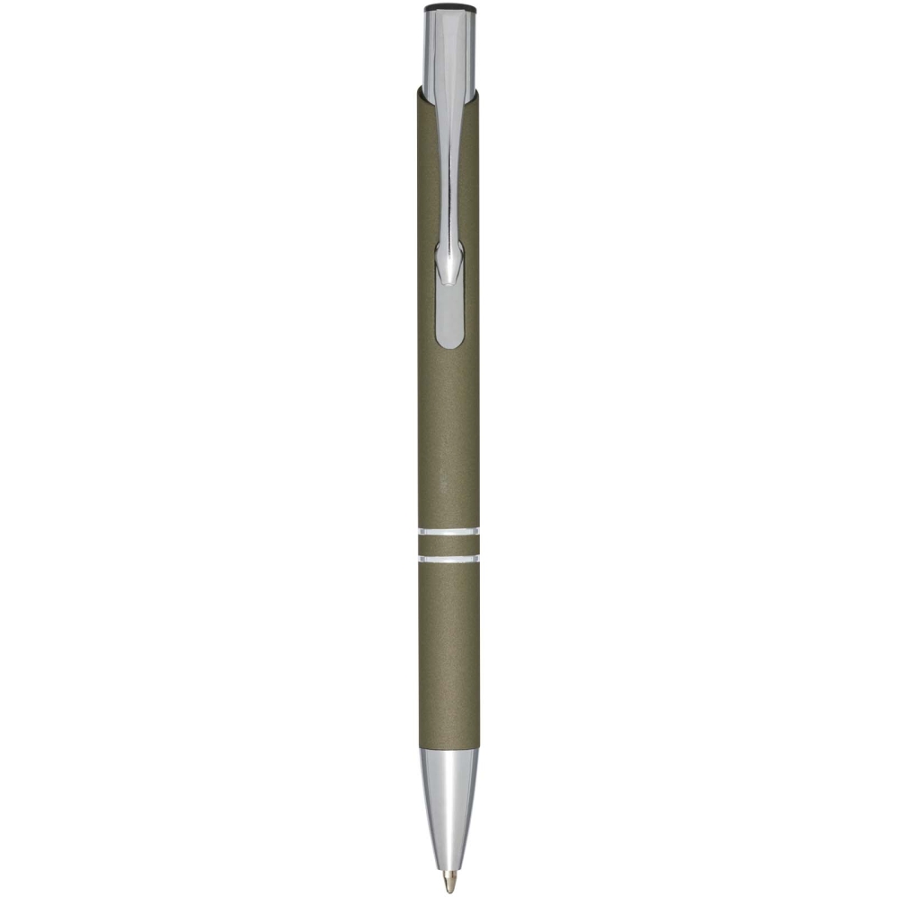 Díky pogumovanému povrchu má pero měkký úchop a laserové rytí odhalí stříbrnou spodní vrstvu. Kuličkové pero se stiskacím mechanismem, povrchem potaženým černou pryží, detaily z chromu a horní částí z černého ABS plastu. Rozměry: 13,5 x O 0,8 cm