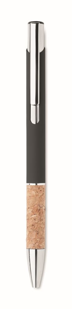 Propiska z hliníku s korkovým úchopem. Modrý inkoust. Rozměry: O1x13,7 cm