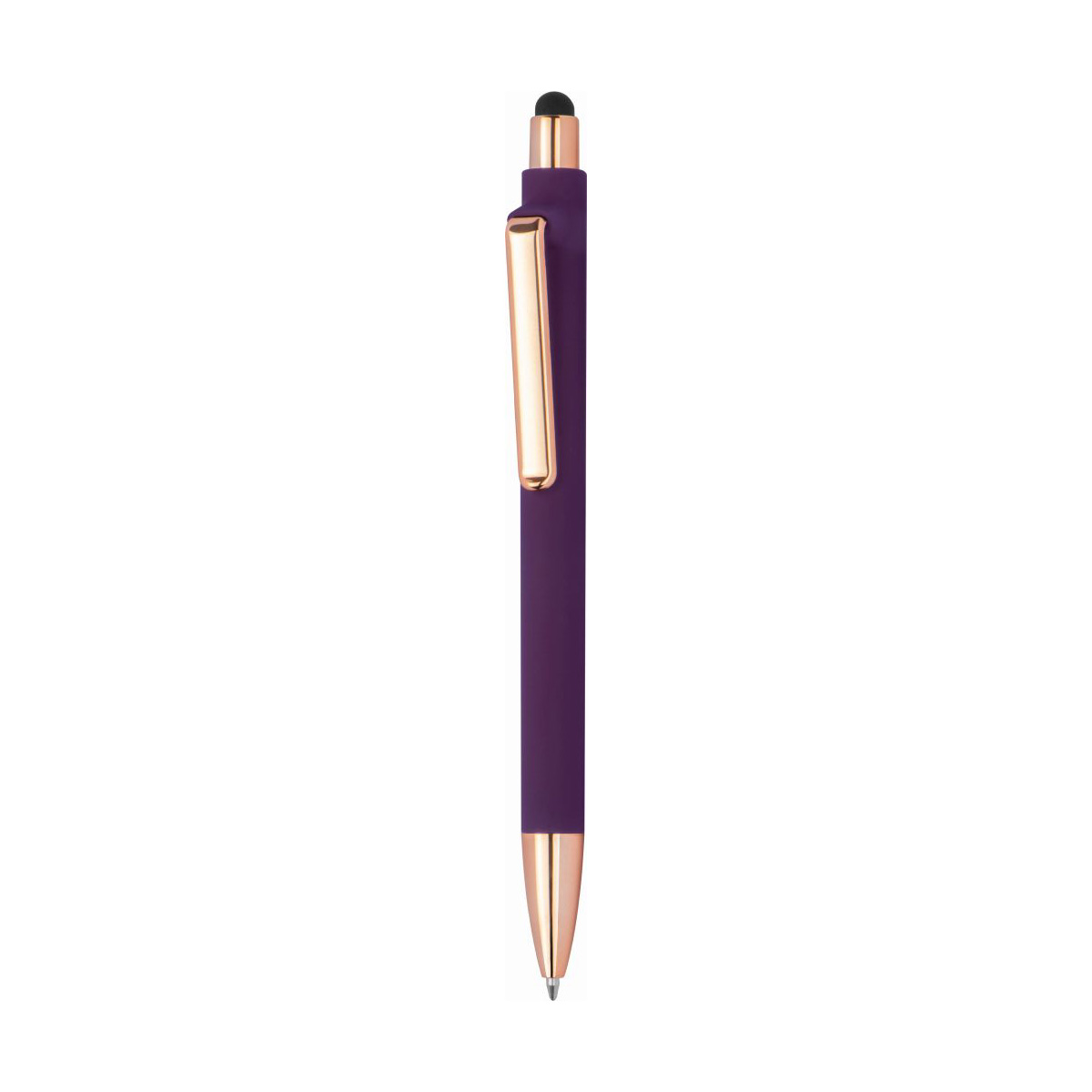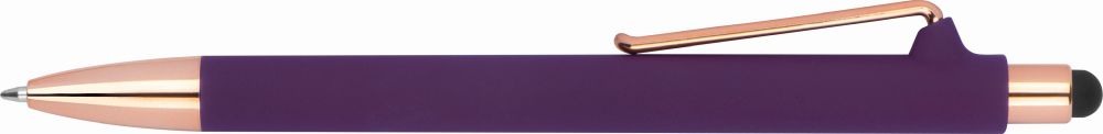 Pogumované kuličkové pero s detaily v barvě růžového zlata. Pero má modrou náplň, elegantní klip a stylus pro dotykové displeje. Rozměry: o 1 x 15,3 cm