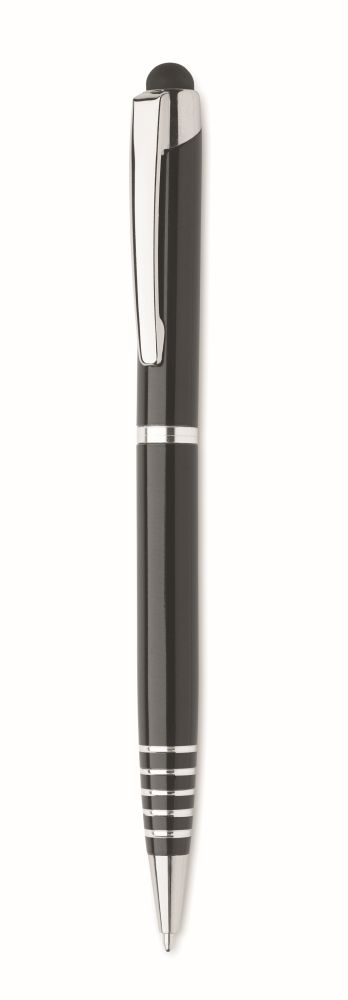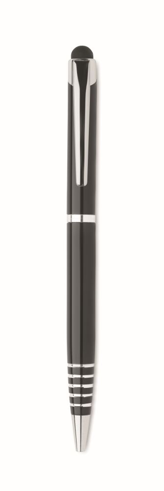 Otočné kuličkové pero z recyklovaného hliníku se stylusem. Modrý inkoust. Rozměry: O1x13,9 cm