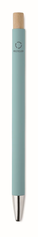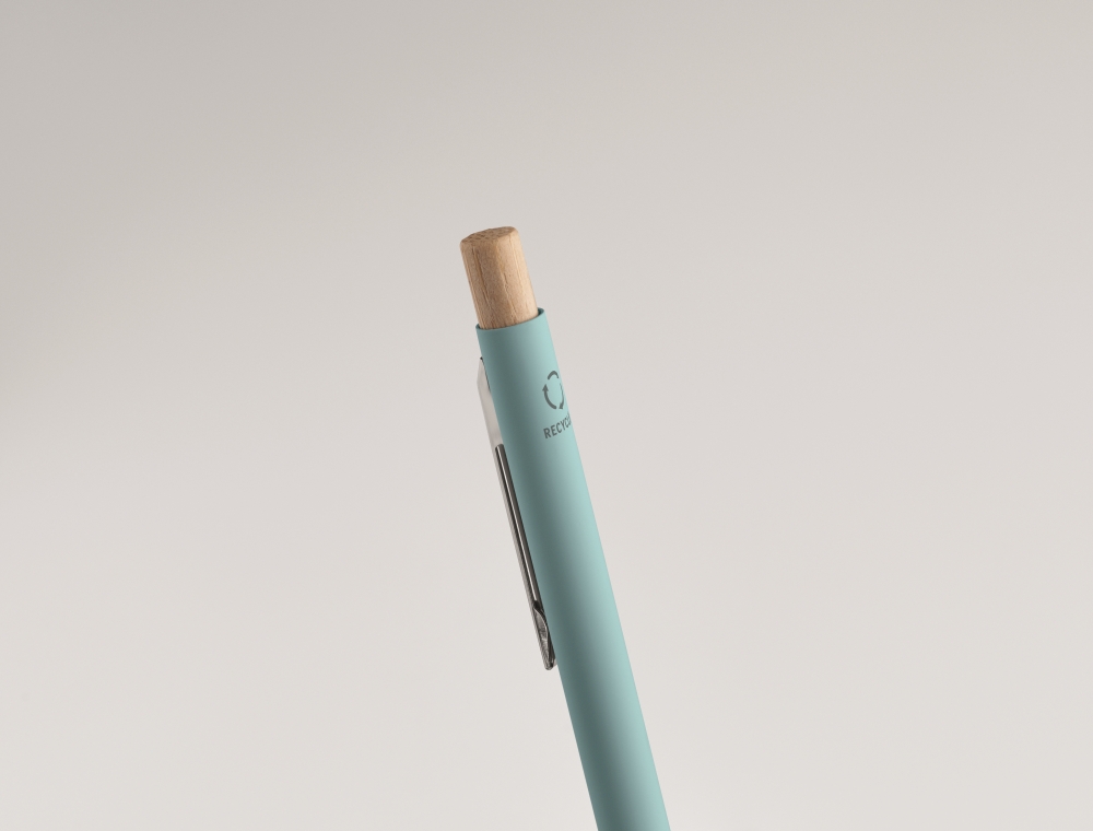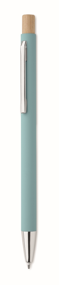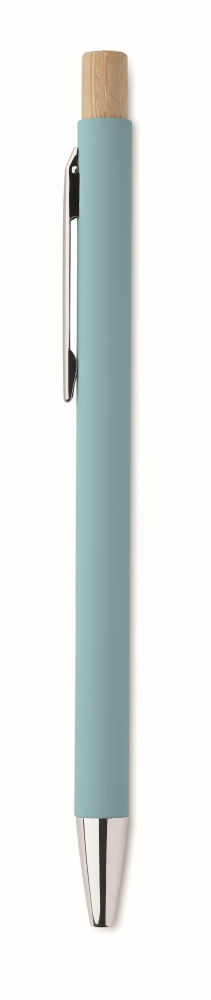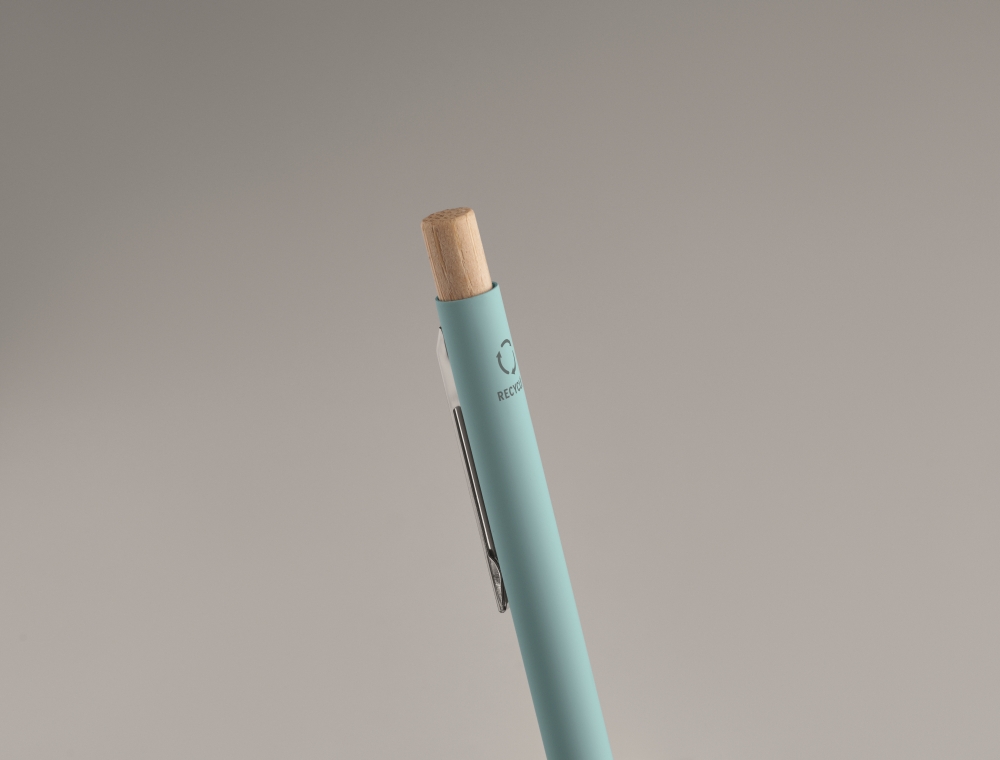 Propiska z recyklovaného hliníku s bambusovým tlačítkem. Stříbrný hrot a klip. Modrý inkoust. Rozměry: O 0,9 x 13,8 cm. Materiál: recyklovaný hliník