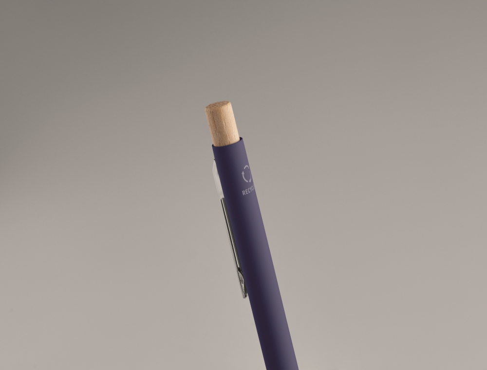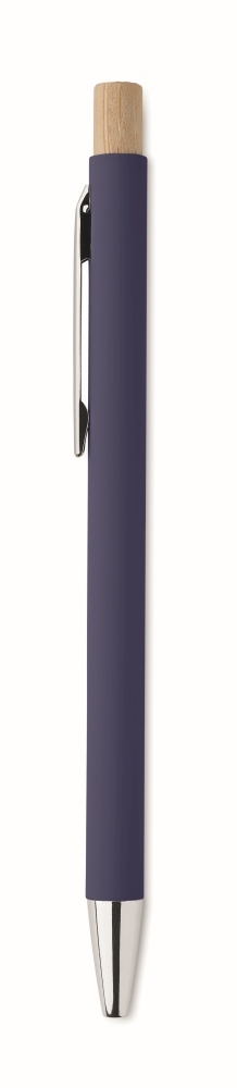 Propiska z recyklovaného hliníku s bambusovým tlačítkem. Stříbrný hrot a klip. Modrý inkoust. Rozměry: O 0,9 x 13,8 cm. Materiál: recyklovaný hliník