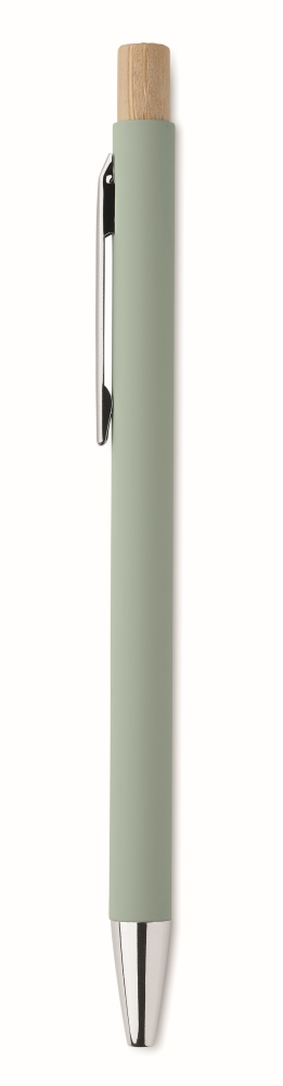 Propiska z recyklovaného hliníku s bambusovým tlačítkem. Stříbrný hrot a klip. Modrý inkoust. Rozměry: O 0,9 x 13,8 cm. Materiál: recyklovaný hliník