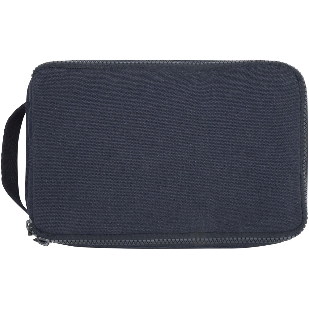 Organizér na toaletní potřeby vyrobený z 500 g/m2 recyklované bavlny a recyklovaného polyesteru s prostorným hlavním oddílem, bezpečným zapínáním na zip a několika vnitřními kapsami, díky čemuž se ideálně hodí pro ukládání nezbytných toaletních potřeb. Je navržen univerzálně, a hodí se tak k uspořádání malých předmětů, jako jsou ponožky nebo nabíječky, abyste měli ve svém zavazadle pořádek. Taška obsahuje recyklovaná vlákna, která používají předem vytříděný odpad určující barvu příze. Rozměry: 21,6 x 14 x 14 cm