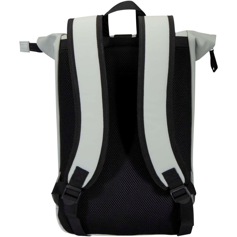 Tento batoh s rolovací střechou je vyroben z prvotřídní recyklované PU kůže s barevně sladěnou podšívkou z RPET a spojuje moderní styl s dlouhou životností. Voděodolná povrchová úprava chrání vaše nezbytné předměty a rolovací zapínání nabízí flexibilní úložný prostor, ideální pro dojíždění, cestování nebo do posilovny. Uvnitř je polstrovaná přihrádka na notebooky do úhlopříčky 15,6” a další kapsa na zip vám umožní uspořádat si techniku a každodenní nezbytnosti. Na vnější straně zajišťuje bezpečný přístup přední kapsa na zip s nepromokavým zipem, zatímco polstrované, nastavitelné ramenní popruhy a prodyšný zádový panel zajišťují celodenní pohodlí. Rozměry: 29 x 56 x 12 cm