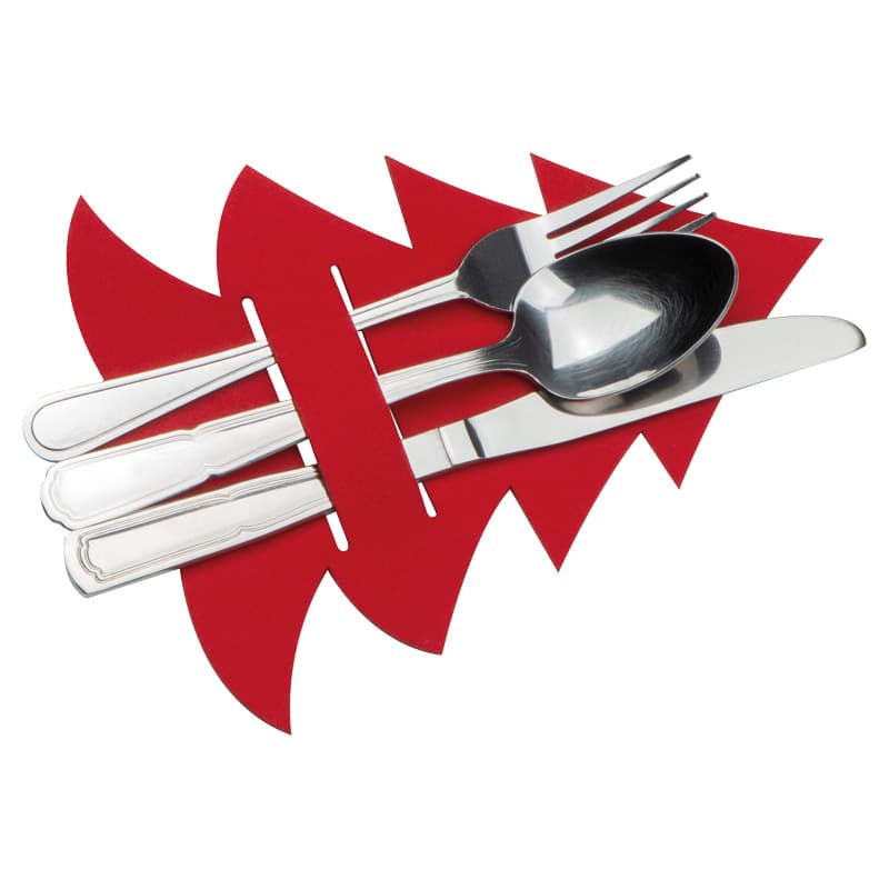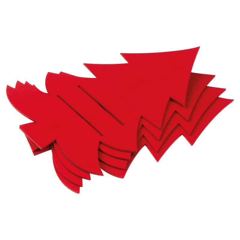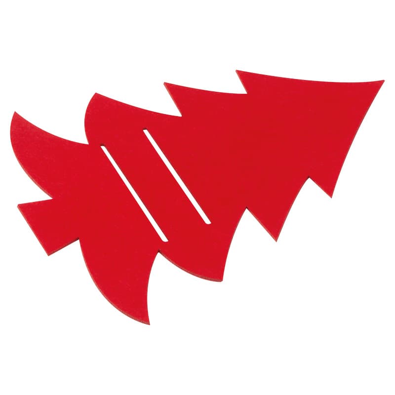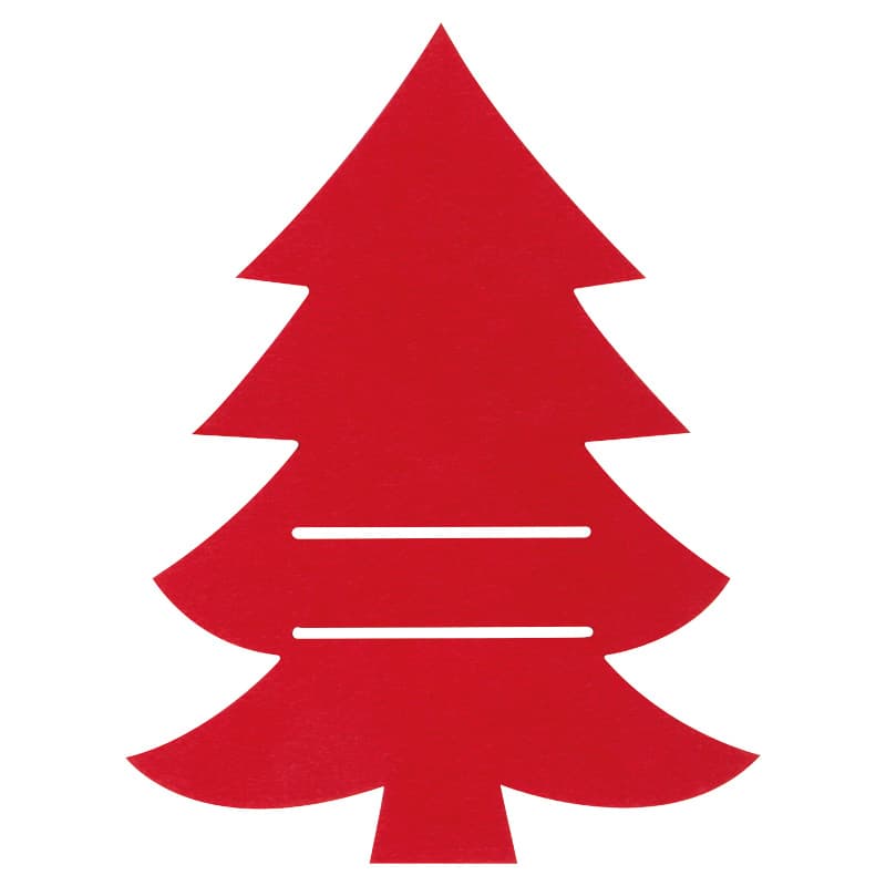 Sada vánočních plstěných podložek na příbory ve tvaru vánočního stromku, vhodné na nůž, vidličku a lžíci. Rozměry: 6 x 6 cm.