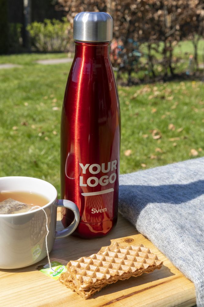 Dvoustěnná vakuová termoska z nerezové oceli o objemu 500 ml. Rozměry: O 7,1 × 25,7 cm. Poznámka: Možnost i celoplošného potisku.