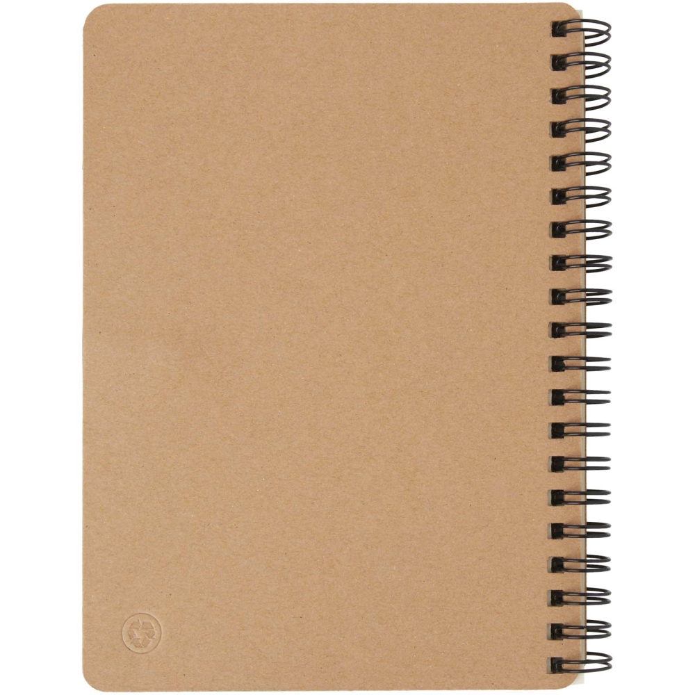 Zápisník s přebalem z recyklovaného papíru s 60 linkovanými listy recyklovaného papíru A6 s perem shodné barvy. Zápisník a pero baleny společně. Rozměry: 18 x 1 x 14 cm