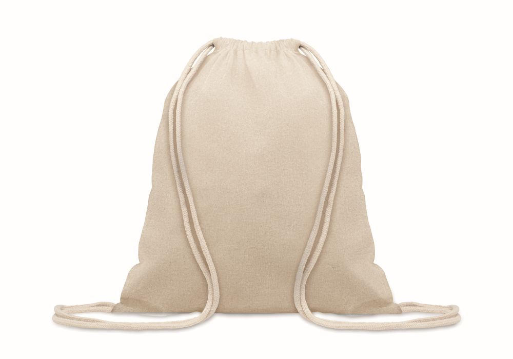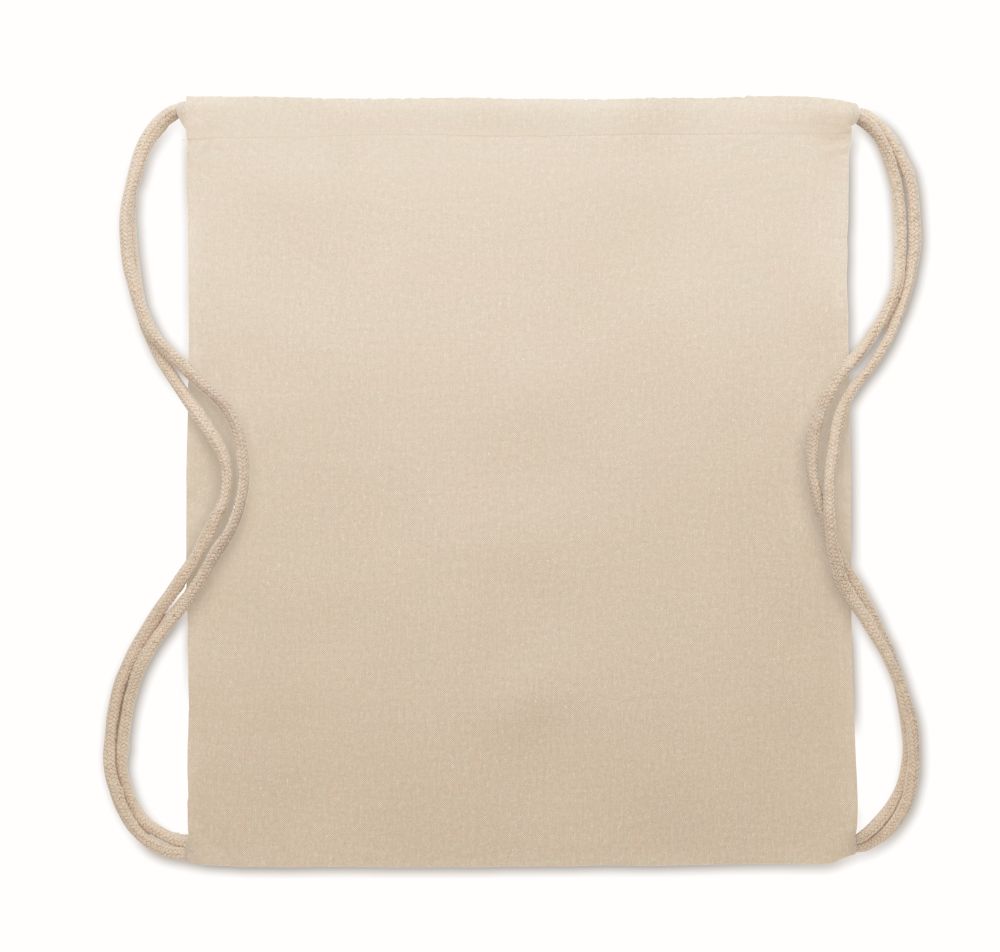 Stahovací batoh z recyklované 140g bavlny s krátkými uchy. Rozměry: 37x41cm