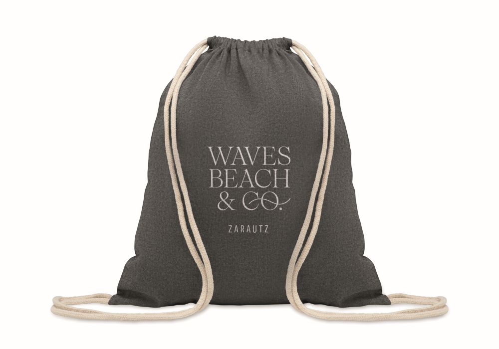 Stahovací batoh z recyklované 140g bavlny s krátkými uchy. Rozměry: 37x41cm