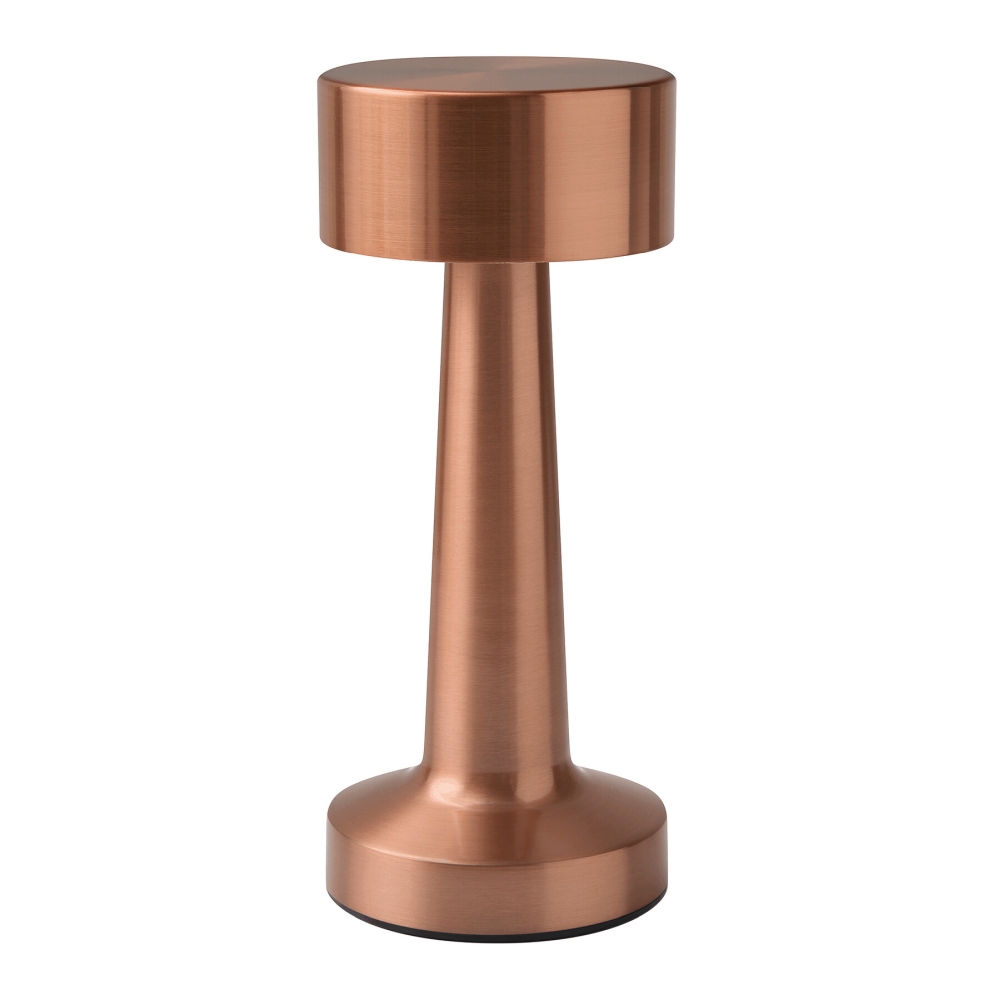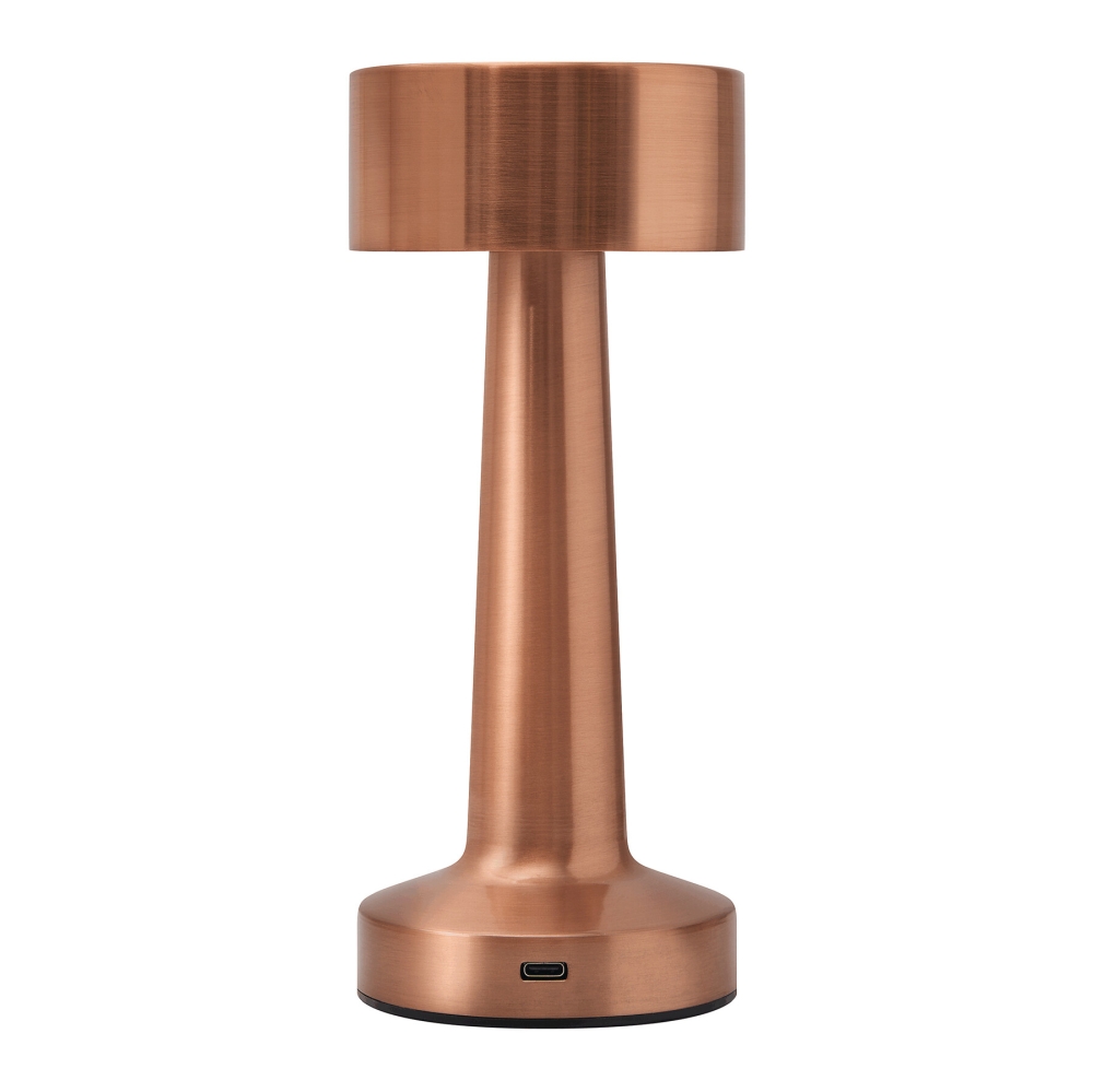 Stolní lampa z nerezové oceli, 3 režimy svícení (teplé, bílé a teplé bílé světlo), dotykový vypínač a volba režimu svícení, včetně nabíjecího kabelu USB s konektorem USB typu C (délka cca 100 cm), tlačítko zapnutí/vypnutí na spodní straně, všestranné použití díky integrované lithiové baterii 800 mAh, 4 protiskluzové nožičky na spodní straně, baleno v krabičce. Rozměry: O9 x 21,5 cm