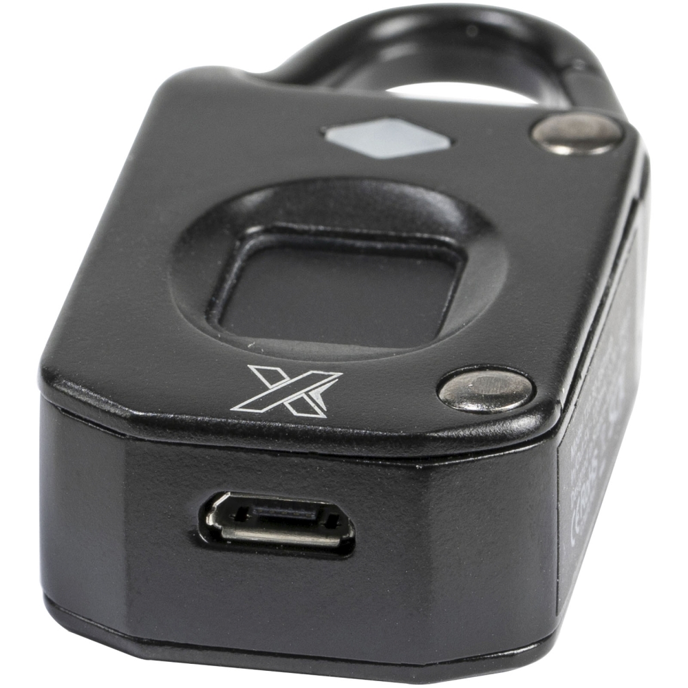 Zámek s nejmodernějším snímačem otisků prstů, který dokáže uložit až 10 různých otisků prstů. Na jedno nabití lze zámek nabízí až 1000 použití. Vstup/výstup USB: 5 V – 100 mA / 3,7 V – 150 µA. Doba nabíjení: 3 hodiny. Dodává se v dárkové krabičce s magnetickým zavíráním, vyrobené z recyklovaného papíru. Rozměry: 2,8 x 1,5 x 6 cm