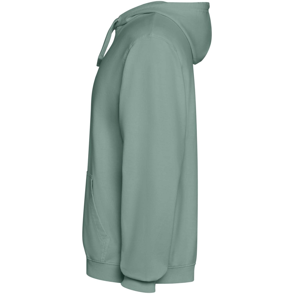 Unisex mikina s kapucí se sepraným vzhledem. Žebrované manžety a lem 2 × 1. Kapuce s podšívkou z jednolícního žerzeje v tónu látky se sladěnými plochými šňůrkami. Krycí steh v tónu látky u krku. Klokaní kapsa.