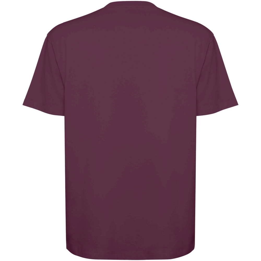 Tričko s krátkým rukávem v nadměrné velikosti. Kulatý límec zdobený 2×1 žebrovým úpletem se sladěnými kryty švů. Boční švy. Široké dvojité prošívání na rukávech a lemu. Odnímatelný štítek.
