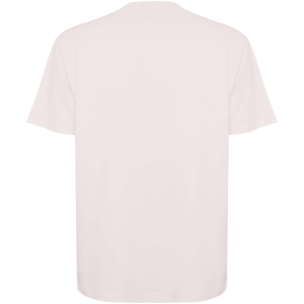Tričko s krátkým rukávem v nadměrné velikosti. Kulatý límec zdobený 2×1 žebrovým úpletem se sladěnými kryty švů. Boční švy. Široké dvojité prošívání na rukávech a lemu. Odnímatelný štítek.